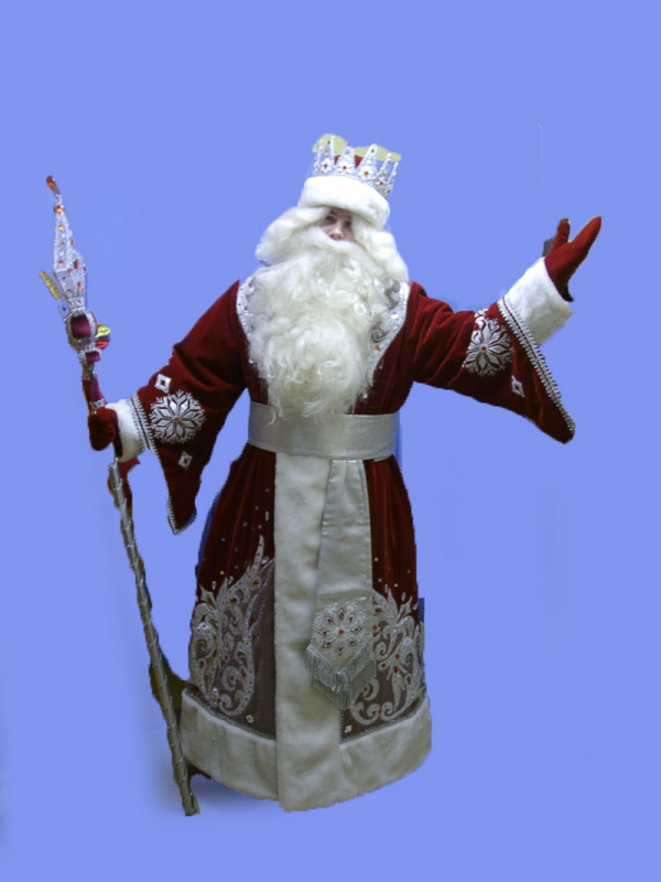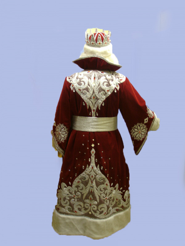 Шуба, кушак, шапка с короной, рукавицы, мешок. Бархат х \ б (Чехия) мех искусственный-норка, парча, камни искусственные. Аппликация по метамизированной сетке- ручная работа.